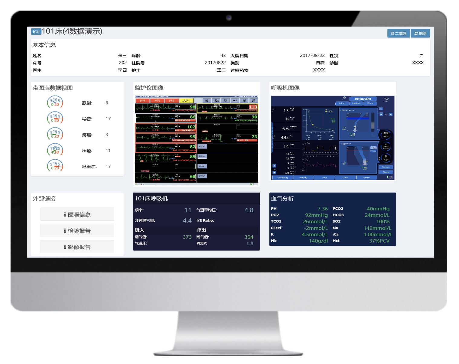 通過的最新的數據采集技術和網絡技術將多臺不同品牌的有創(chuàng)呼吸機聯網,并通過大屏實時集中呈現治療預設參數和監(jiān)測參數,實現多臺集中監(jiān)測、集中管理和數據存儲。